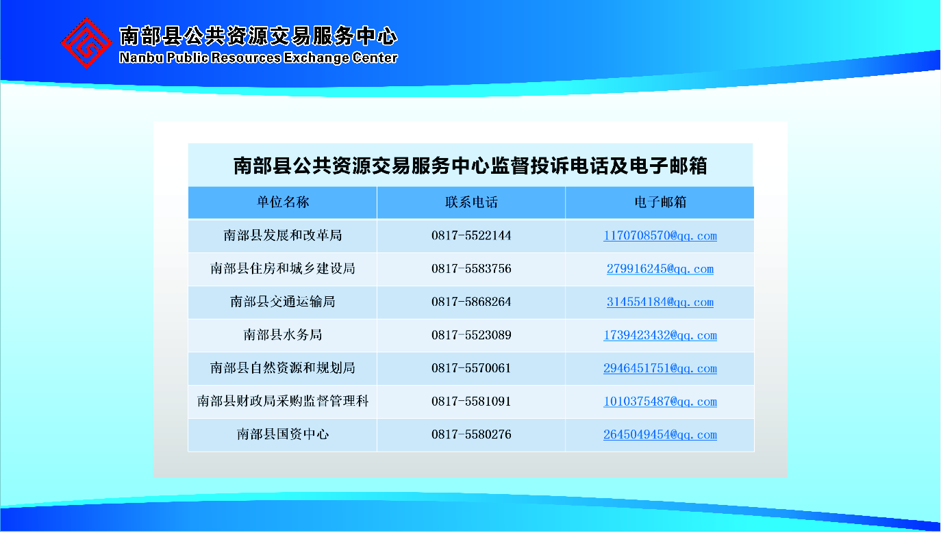 南部縣公共資源交易服務(wù)中心監(jiān)督投訴電話及電子郵箱